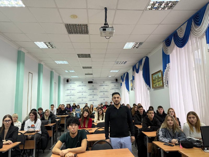 19.12.2025 в ВФ МЮИ состоялась важная беседа, проведённая представителем ислама — Исалмагомедовым Маликом, заместителем муфтия ЦДУМ Волгоградской области со студентами о семейных и общечеловеческих ценностях. В ходе встречи были подробно обсуждены ключевые семейные и общечеловеческие ценности, которые служат основой крепких и гармоничных отношений в обществе.