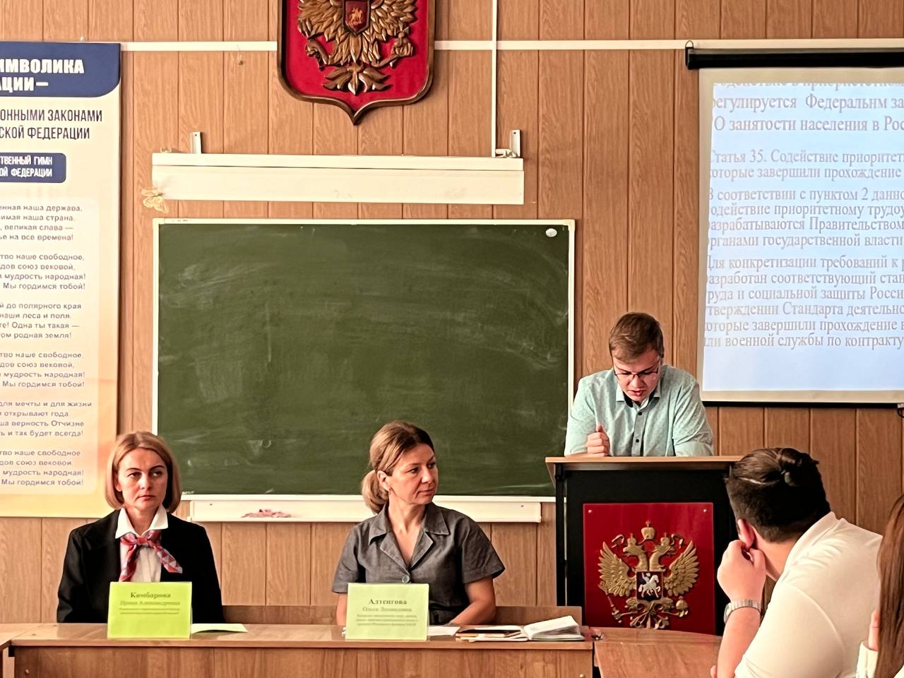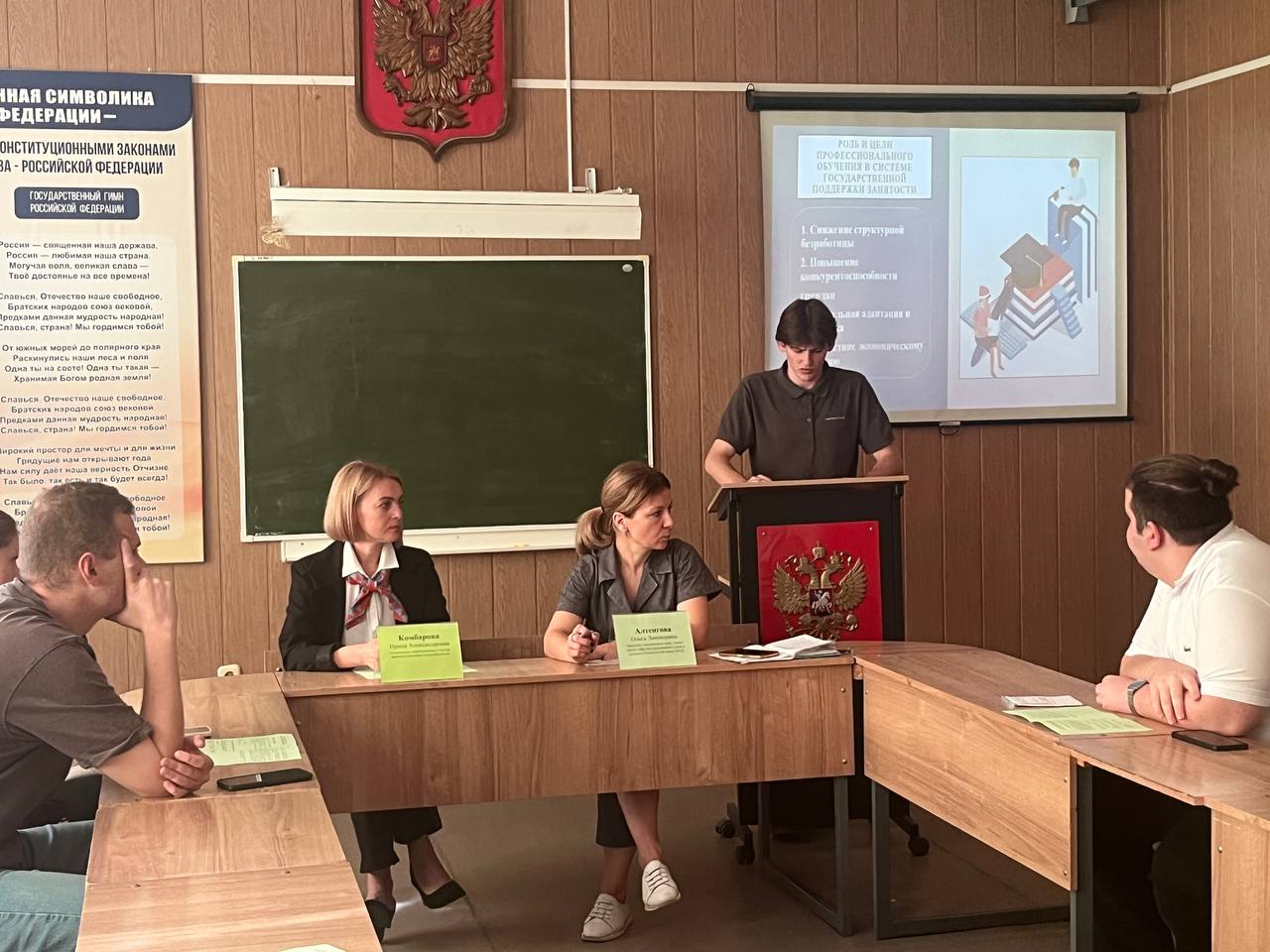 Научно-практический семинар провела доцент кафедры гражданского права и процесса, канд. юрид. наук, доцент Алтенгова Ольга Леонидовна. Экспертами-практиками на мероприятии выступили руководитель территориального Центра занятости населения города Волжский Комбарова Ирина Александровна и начальник отдела трудоустройства и информации Анна Николаевна Полянина.