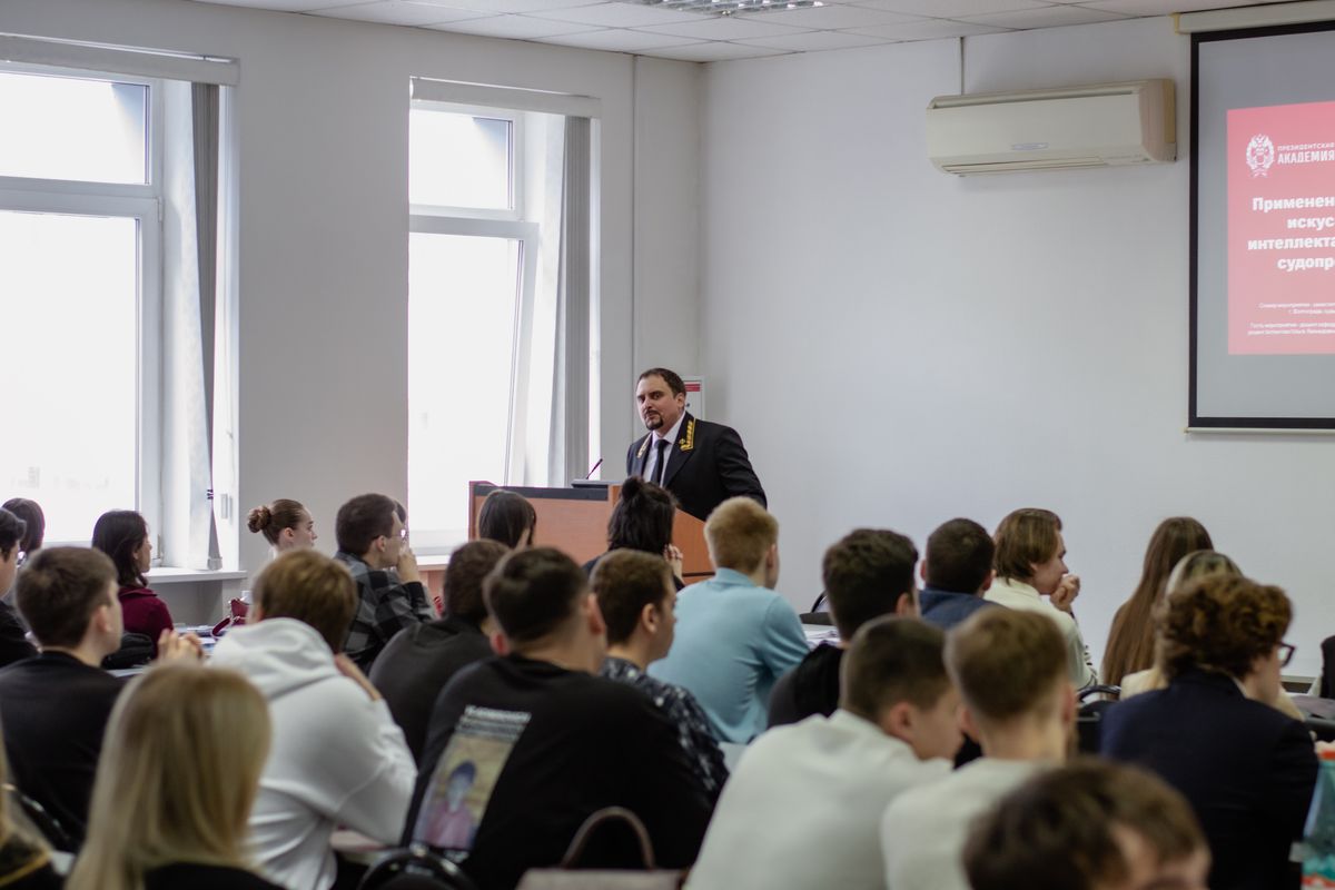 Участие в данном мероприятии принял заместитель председателя Дзержинского районного суда г. Волгограда Резников Е.В., а также обучающиеся юридического факультета Президентской академии и Волжского филиала «Международный юридический институт». В ходе встречи были затронуты такие вопросы как: этические и правовые аспекты использования системы ИИ в рамках судопроизводства; правосубъектность искусственного интеллекта; особенности ИИ как объекта гражданских прав; опыт использования ИИ в судебных системах зарубежных стран. Помимо основного выступления Резникова Е.В., студентами ВИУ РАНХиГС и ВФ МЮИ под руководством доцентов Семеновой С.В. и Алтенговой О.Л. были подготовлены доклады по теме мероприятия, а также состоялась активная дискуссия по проблемным вопросам.